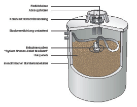 Die Entnahme von oben gewährleistet die zuverlässige Förderung des Brennstoffes in den Heizkessel.